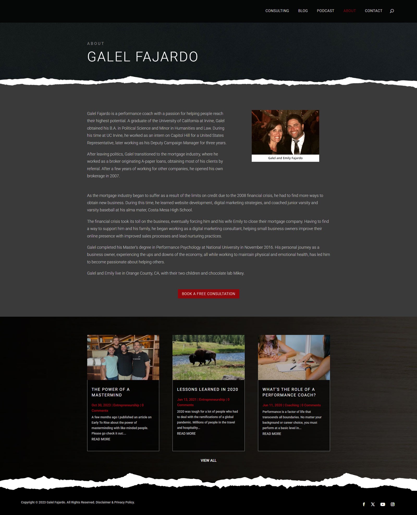 I got to wander outside of my comfort zone a little bit with this one. Galel is a business consultant and needed a fresh new website. They asked for a very dark, masculine, somewhat industrial look and feel which was fun to dabble in. No logo needed, just their name in a sharp typeface. Colors were also chosen ahead of time. Overall I really like how the website turned out.